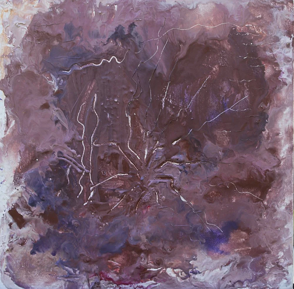 The raw, carved texture of the encaustic piece, ‘Adam,’ speaks directly to the emotional toil explored in the poem ‘Stress Fractures.’ The carving process leaves visible trauma in the ‘rose-red dirt’ medium, representing the pressure and painful splitting that occurs during seasons of grief and questioning. The visual ‘stress fractures’ are the direct manifestation of the emotional state found in the verse.